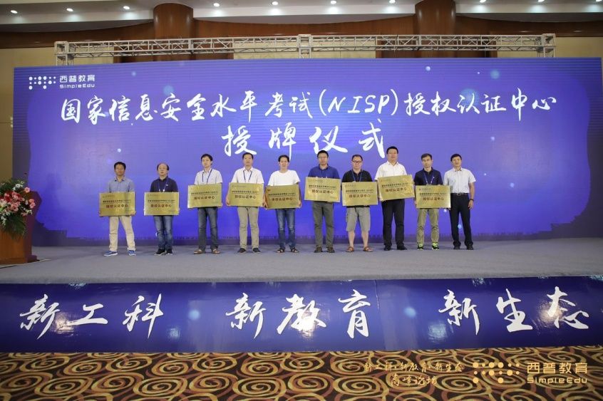 会议期间,举行了“国家信息安全水平考试授权认证中心”NISP授牌仪式。NISP由中国信息安全测评中心与教育部考试中心认证和授权,我院具备了NISP所要求的师资力量,批准成立“NISP授权培训中心”。孙夫雄老师代表我院参与了NISP授牌仪式。