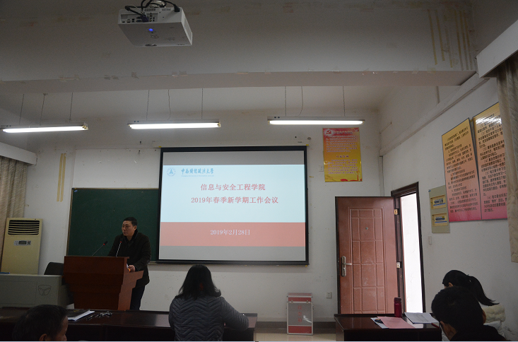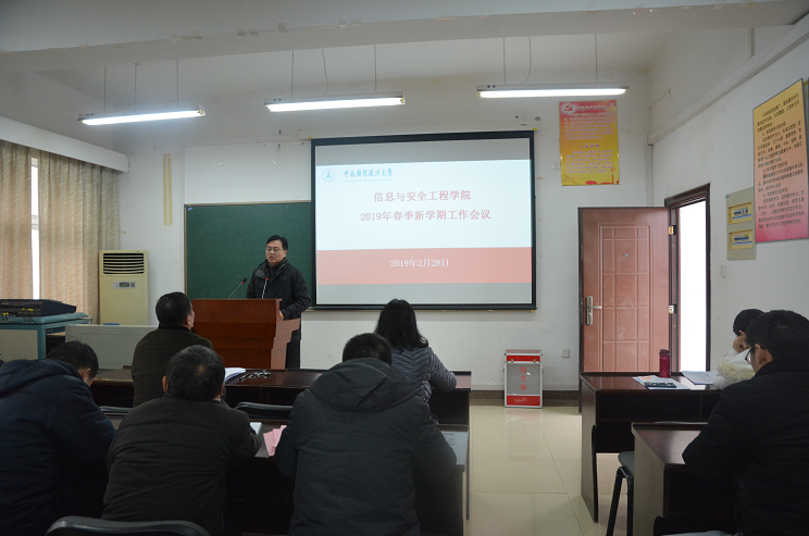 (通讯员:杨晨)2019年2月28日下午,信息与安全工程学院2019年春季新学期工作会议在文永楼502会议室召开,学院全体教工参加了本次会议。