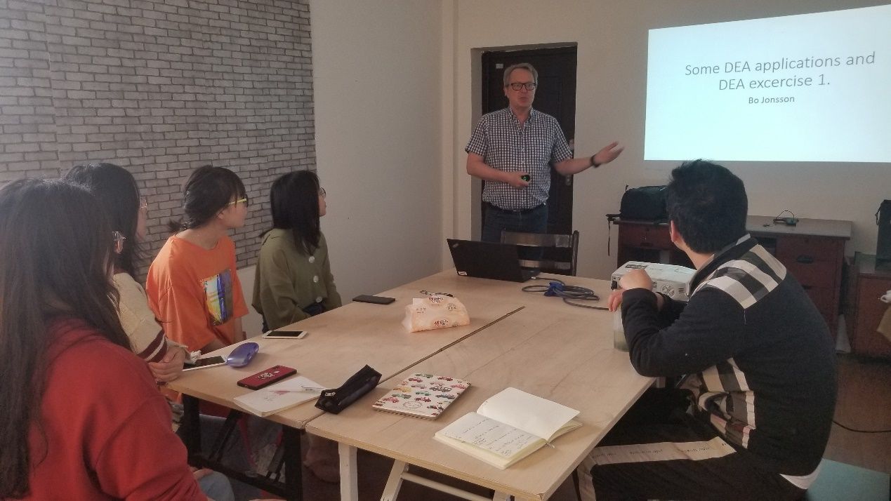 Jerry Blomberg教授主要从事资源与环境经济学,特别是矿产资源经济理论、资源与环境管理方面的研究工作;Bo Jonsson教授从事自然资源环境经济、计量经济理论等方面的研究工作。Jerry Blomberg和Bo Jonsson教授采用多媒体互动教学模式,进行了一系列“资源与环境经济”主题讲座,涵盖经济学中常用的数学方法数据包络分析(DEA模型)基础理论及应用实例和瑞典学术研究体系及政府扶持机制等方面的内容。