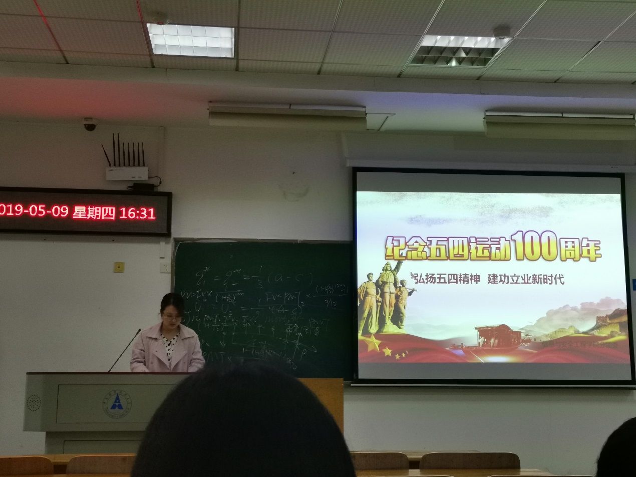 2019年5月9日星期四下午三点半,信息与安全工程学院本科生第一党支部在文泰105教室召开了以弘扬五四精神,建功立业新时代为主题的党日活动。