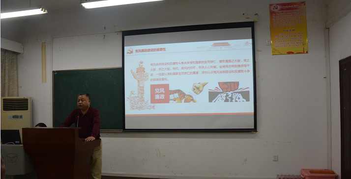 首先,院党委书记张从发向与会人员介绍我院为扎实开展好学校第二十个党风廉政建设宣传教育月的主要活动安排,并以“不忘初心、牢记使命”为主题为全院教职工讲廉政党课。希望通过本次学习,全院教职工在思想上能够受到一次警醒、教育,廉政意识和法治观念进一步提升,拒腐防变的能力进一步增强。