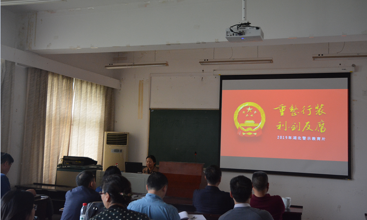最后,大家集中观看了警示教育片《重整行装 利剑反腐》。警示教育片讲述了5名党员领导干部忽视政治、淡化政治、不讲政治,而导致信仰缺失、方向迷失、原则尽失的悔恨经历。从善如登,从恶如崩,影片深刻地警示教育我们要严守廉洁底线,敬畏法律的高压线。