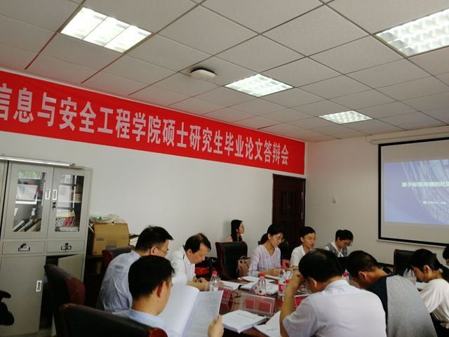 2019年5月9日,我院顺利举行了管理科学与工程专业下设的安全管理和环境管理两个研究方向的硕士答辩会。2019年5月18日计算机科学与技术专业、管理科学与工程专业下设的管理信息系统、数据挖掘与商务智能、信息安全管理等研究方向也依次进行了硕士答辩。2019年5月19日计算机技术专业于文永楼502室顺利举行了硕士答辩会。至此,信息与安全工程学院2019届研究生毕业论文答辩工作圆满完成。
