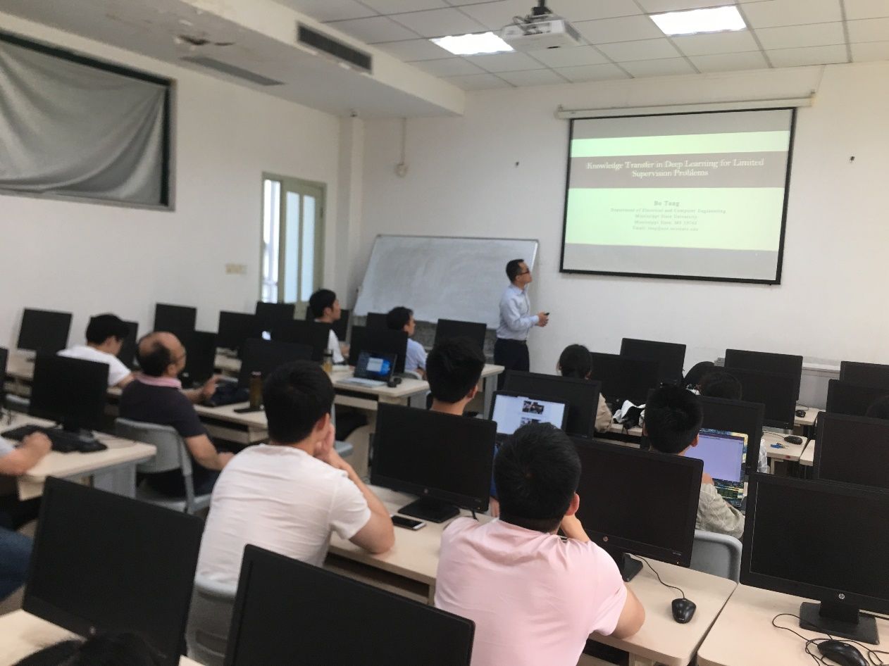 2019年5月27日,美国密西西比州立大学电子与计算机工程系唐波博士莅临信息与安全工程学院,并为我院师生做了题为“有限监督学习中的知识迁移问题研究”的专题学术讲座。讲座由计算机科学系李胜副教授主持,本院部分教师和研究生参加了本次学术交流活动。
