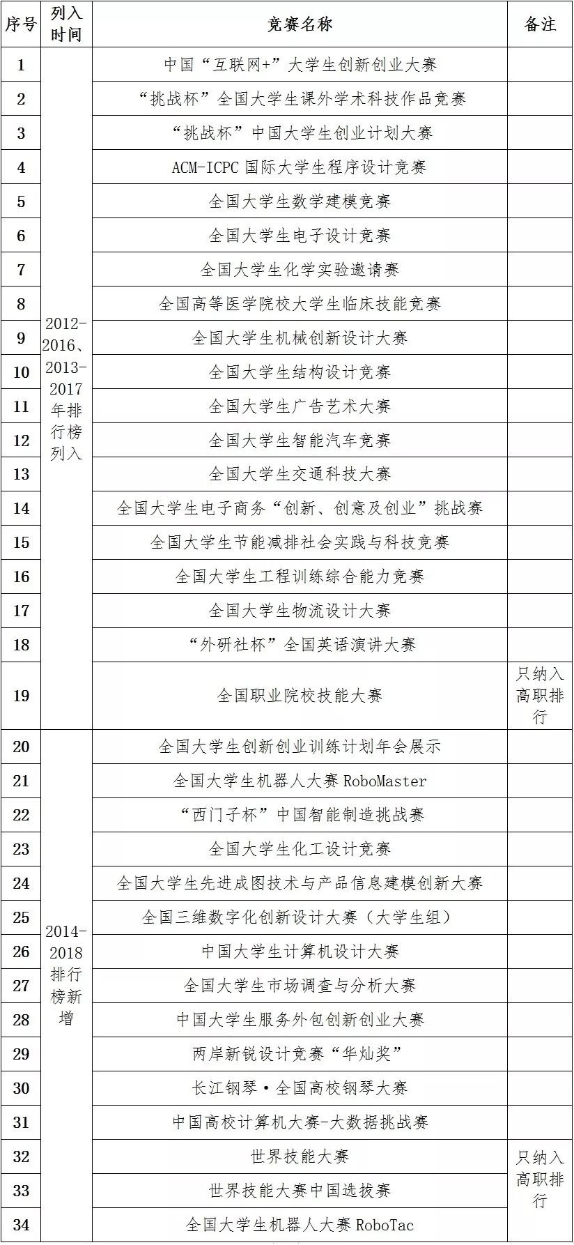 图2. 2014-2018年中国高校最具影响力的赛事名单