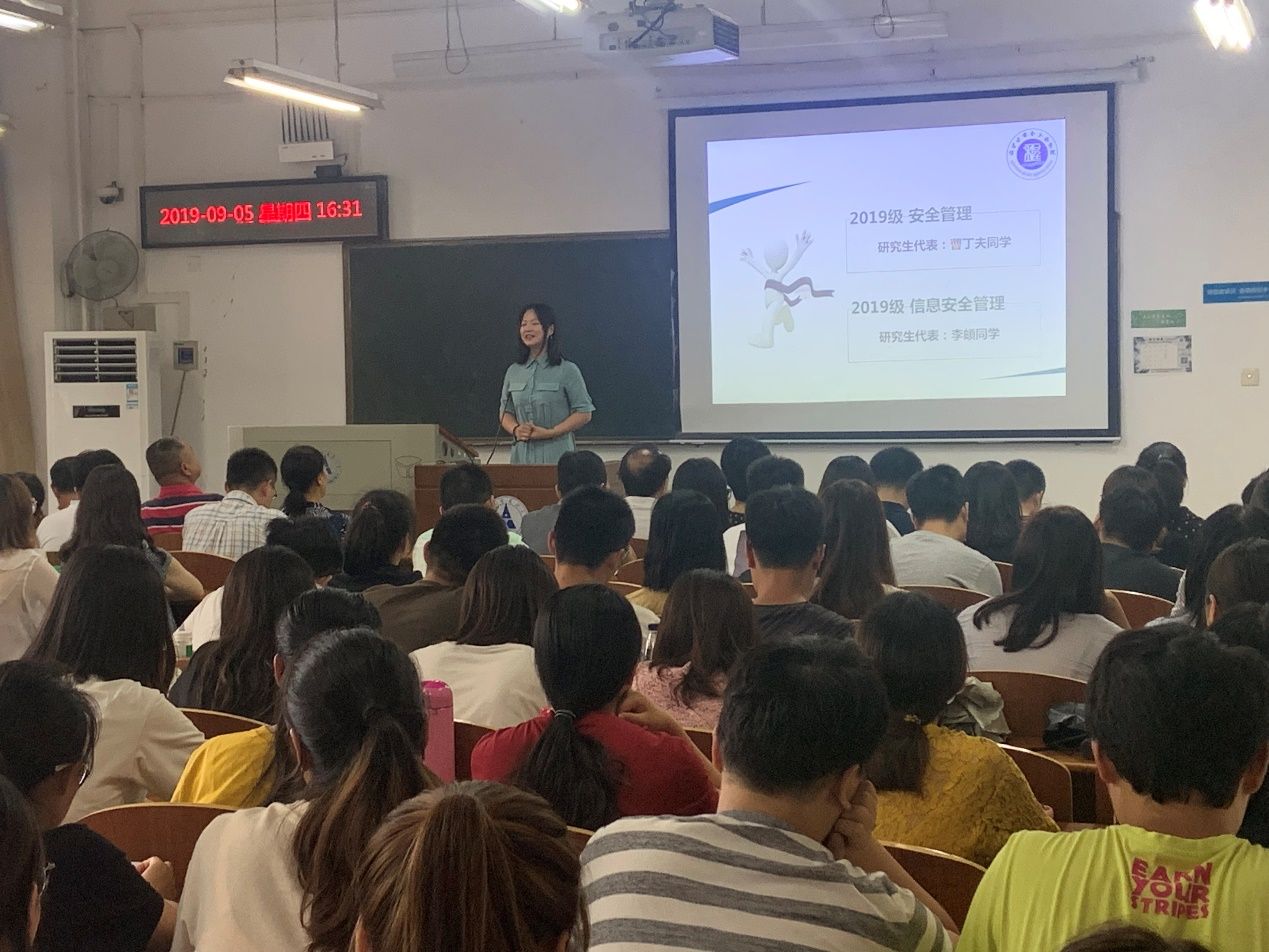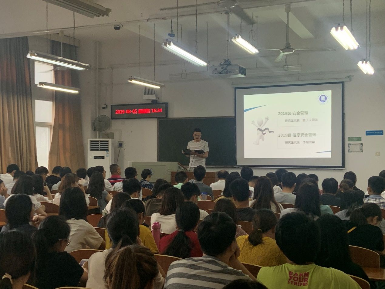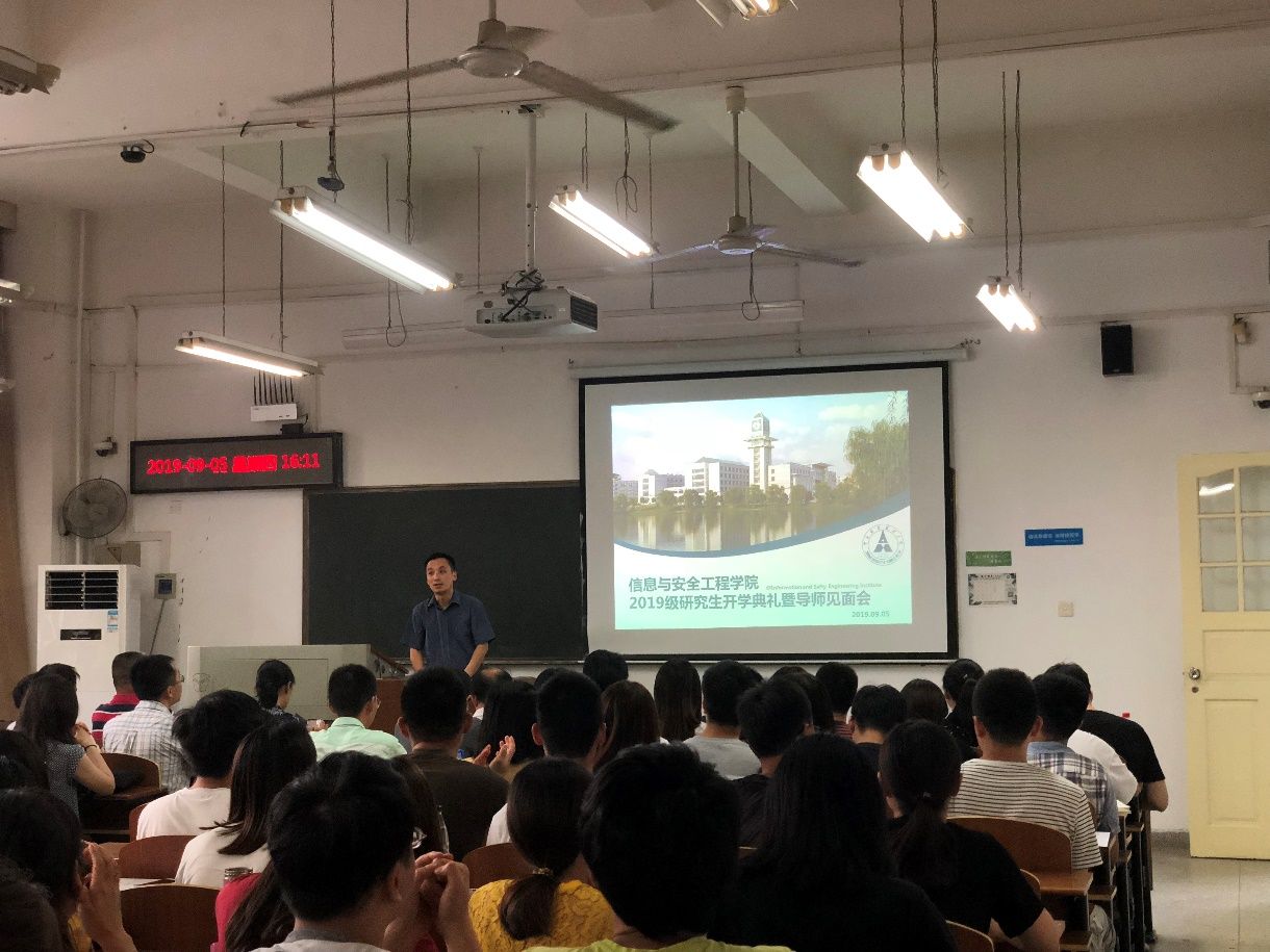 (通讯员:刘恒竹)信息与安全工程学院2019级研究生开学典礼暨导师见面会于9月5日下午四点在文澜楼206教室隆重举行。院长张敬东教授、院党委书记张从发、副院长金大卫教授以及各导师组组长和部分老师出席了本次会议。开学典礼由学院副院长金大卫教授主持。