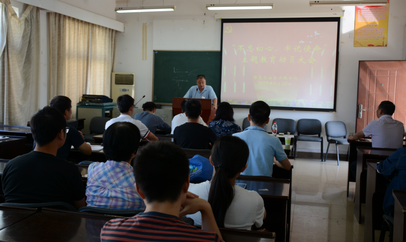 (通讯员:杨晨,摄影:付慧娟)9月20日下午2:30,信息与安全工程学院“不忘初心、牢记使命”主题教育动员大会在文永楼502会议室召开。会议由学院党委书记张从发主持,学院领导班子成员、全体教工党员、部分学生党员代表参会。