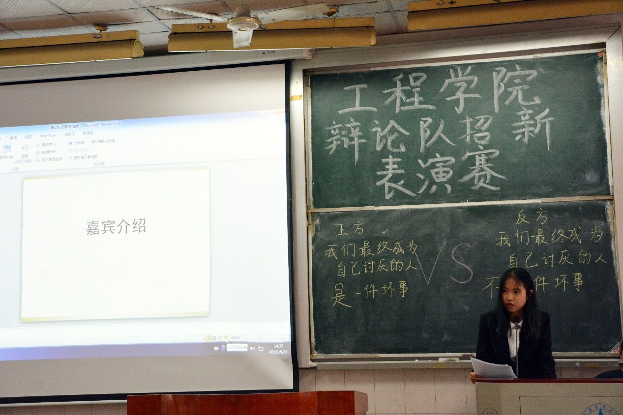 工程学院辩论队表演赛正式落下帷幕,同学们从中感受到了辩论的魅力,这也为接下来的招新工作打下了良好的基础,同时这场表演赛也为19级新生的校园生活带来一抹更加亮丽的色彩。
