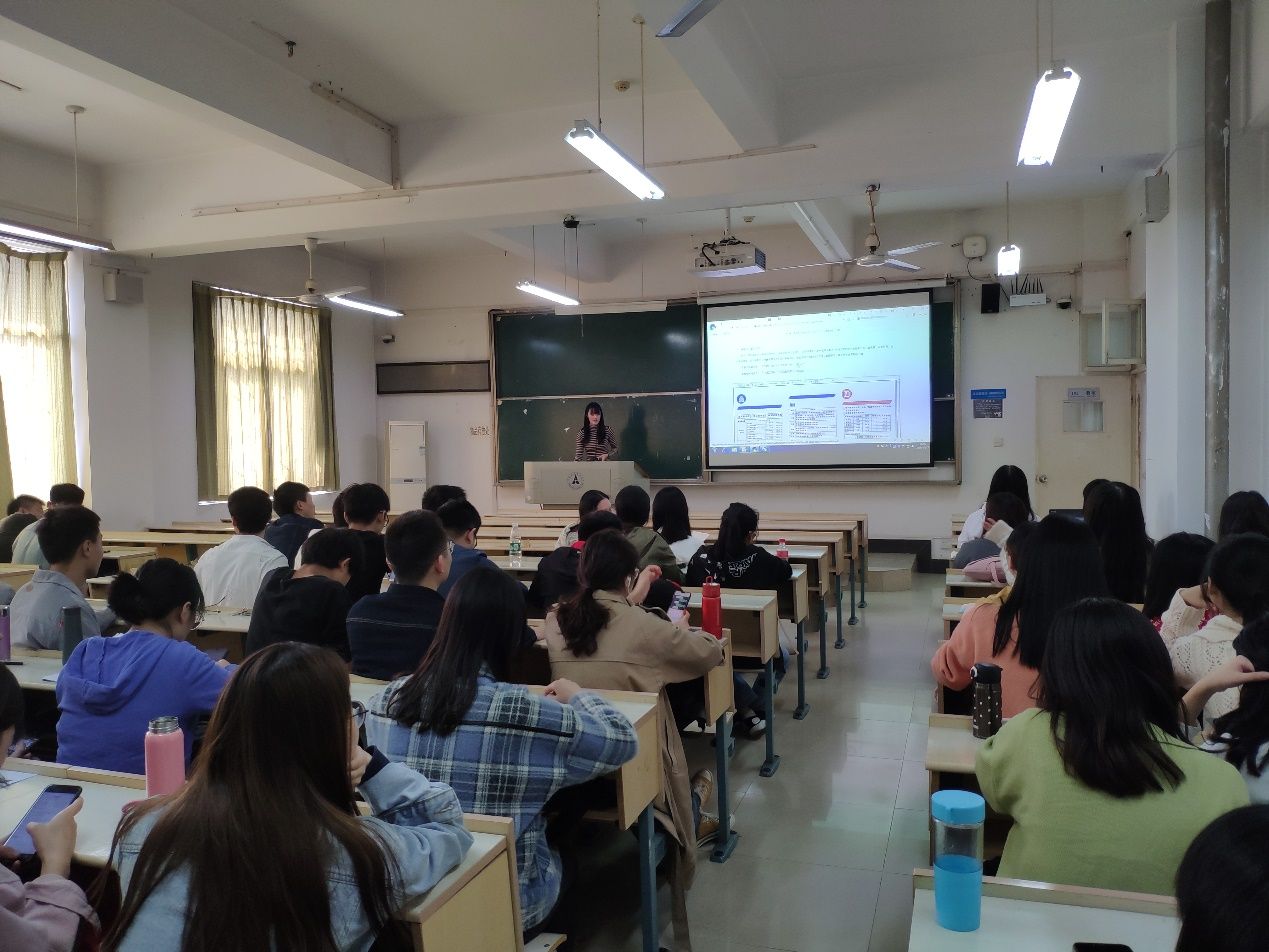 图书馆负责人以PPT演示与操作实例相结合的形式,从四个部分对图书馆资源运用进行了具体的讲解。首先是馆藏和借阅规则,该部分大致介绍了我校图书馆馆藏的分布情况和书籍的借阅方式;其次在馆藏书目检索系统与“我的图书馆”部分中,以检索《平凡的世界》一书为例,说明了如何查找到自己需要借阅的书籍,并对 “我的图书馆”中的信息查询功能进行了介绍;然后在电子资源与实例部分,对中外文数据库资源进行介绍,并具体讲述了超星发现、博看、上业英语等数据库的运用方法;最后在常用服务与选座系统部分中,讲述了图书馆自习座位预定的流程。