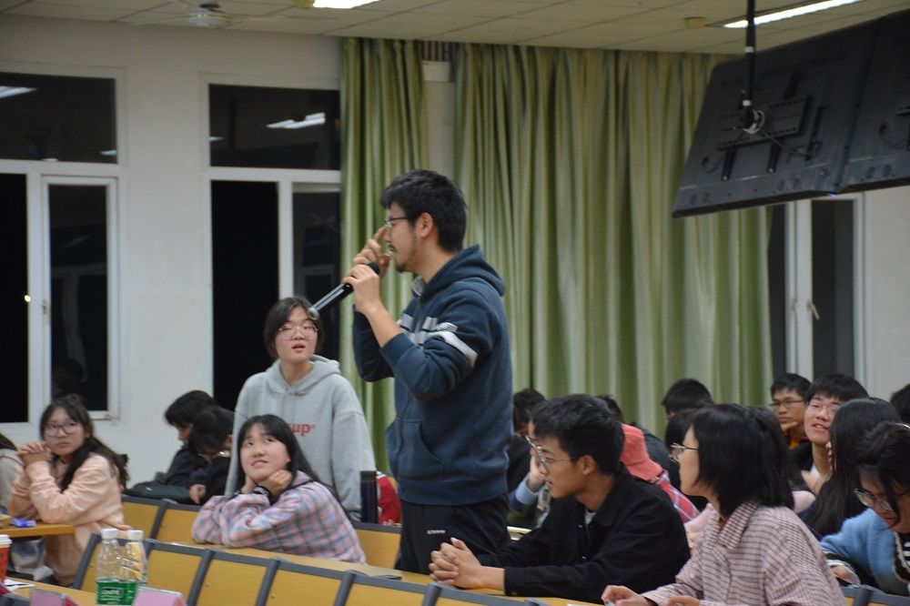 比赛结束后评委对双方辩手提问,同时以专业的角度对其观点和论述进行了点评。肖郁均师兄对反方的观点提出反驳,以此告诫他们在论述的过程中,不要放入过度片面化的观点;张江海师兄则以社会和群众的关系对正方的观点提出点评,凸显其观点的不足。两位评委都以引例的方式对双方进行点评,让观众更容易接受。