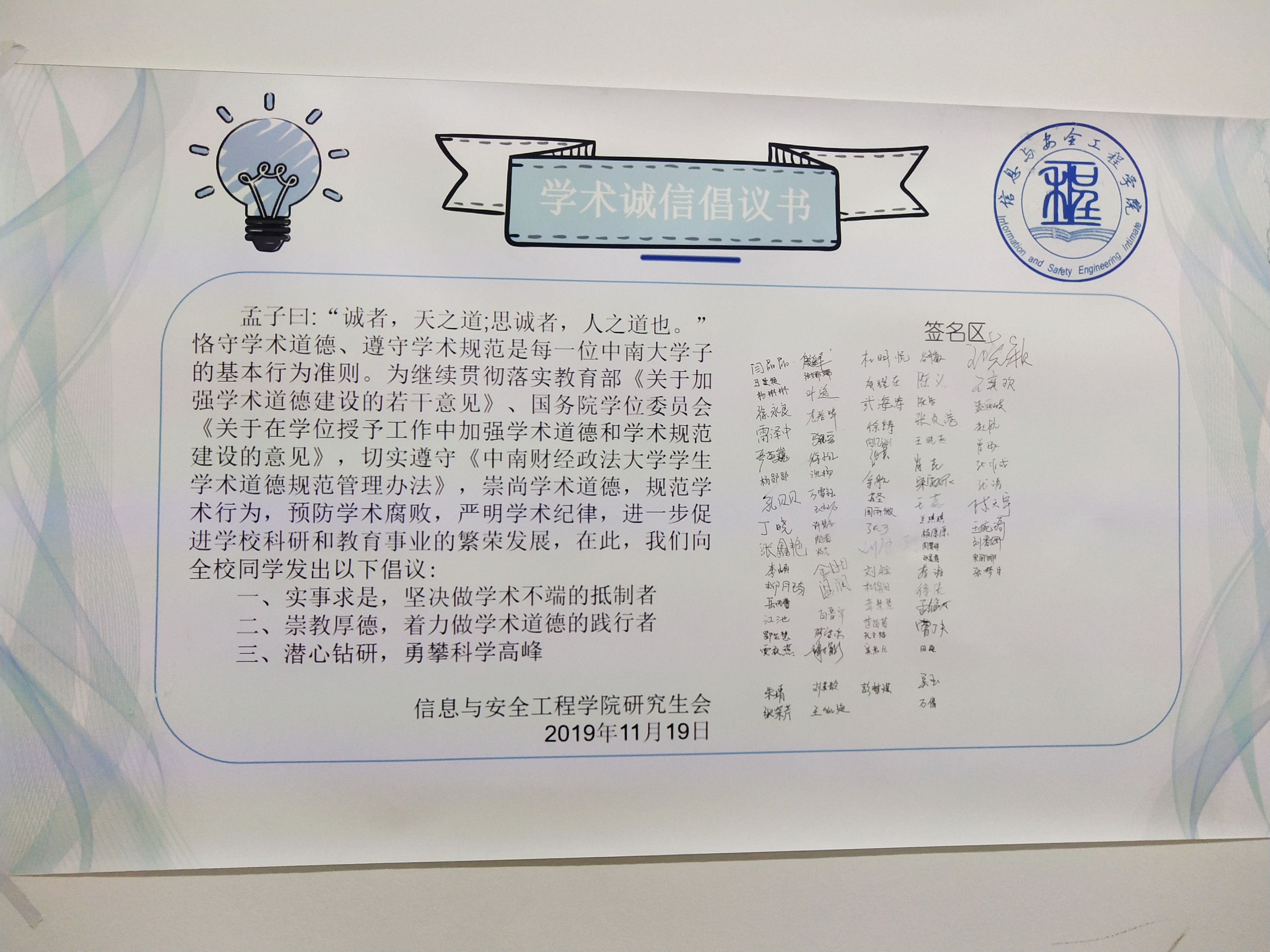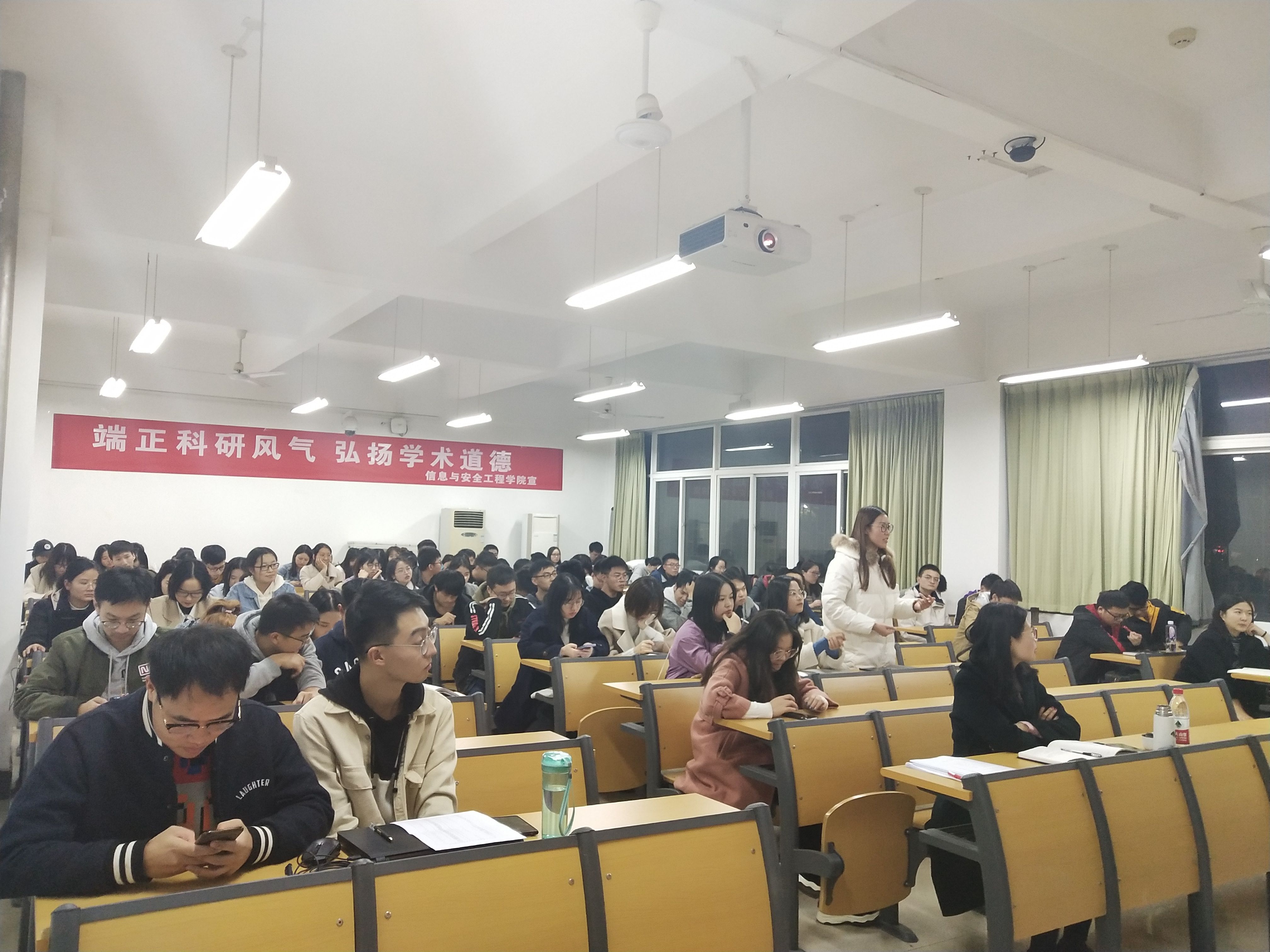 入座之前,同学们纷纷积极主动地在“学术诚信倡议书”上进行签名,晚七点本次报告会正式开始。