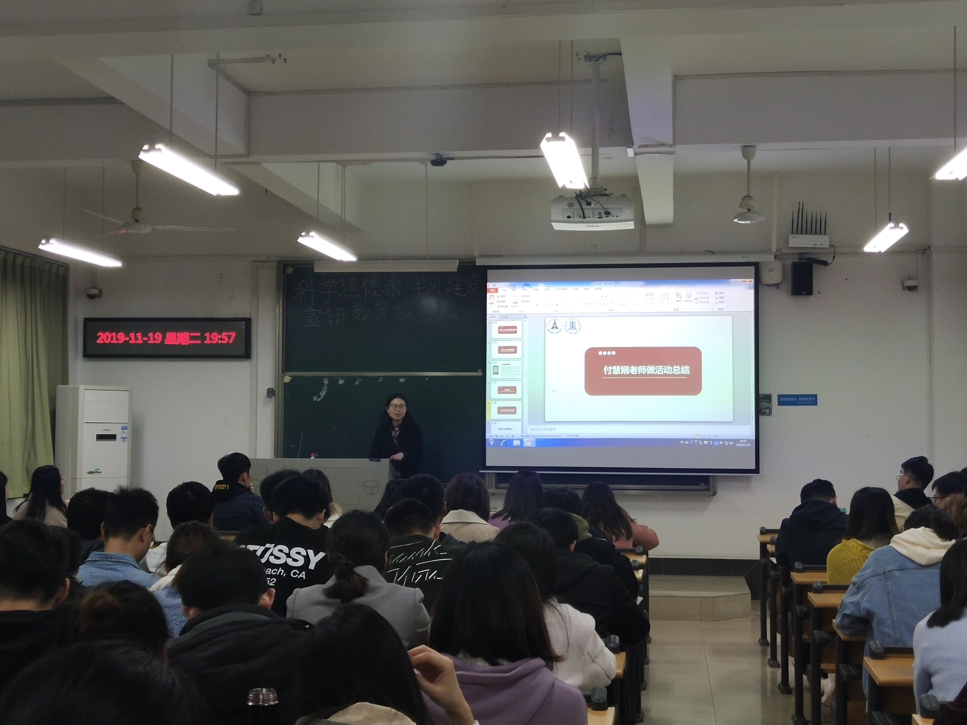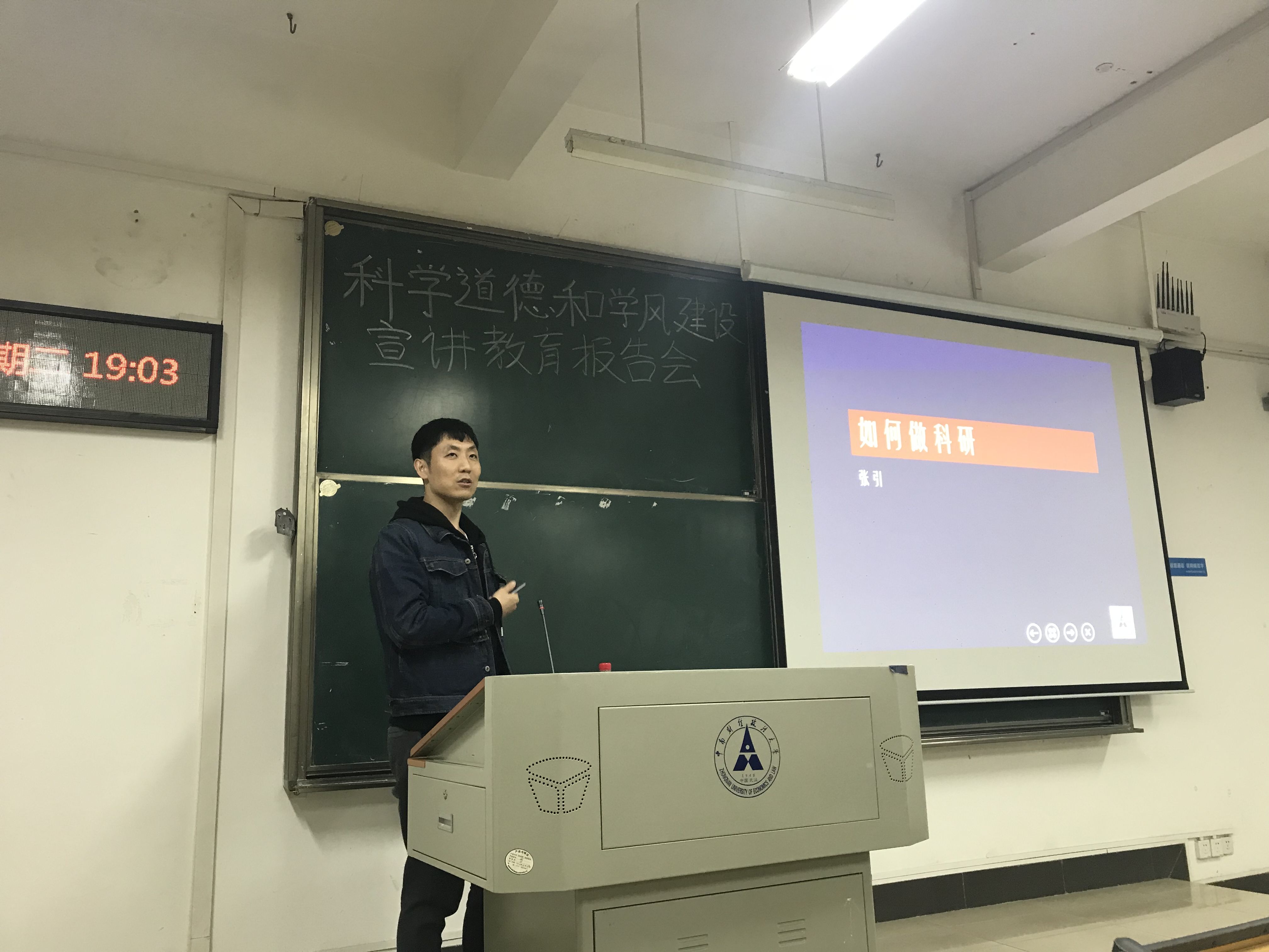 (通讯员:王蕊)为贯彻落实《教育部关于切实加强和改进高等学校学风建设的实施意见》精神,引导全院研究生积极践行科学精神和科学道德,严格遵循科研伦理和学术规范,培养和强化自身的自律意识,规范学术不端行为,共同推进学术科研的健康发展。我院于2019年11月19日晚19:00在文添楼105举行了以“端正科研风气·弘扬学术道德”为主题科学道德与学风建设宣讲教育报告会。本次报告会特邀计算机科学与技术导师组组长张引副教授做题为《如何做科研》的讲座。2019级全体研究生以及辅导员付慧娟老师参加此次活动。