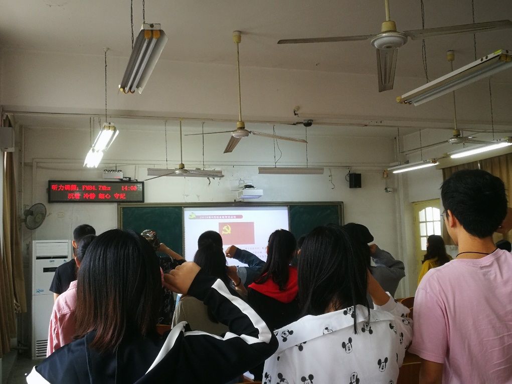 首先全体党支部成员在信管1702班苑心怡同志的带领下重温了入党誓词。