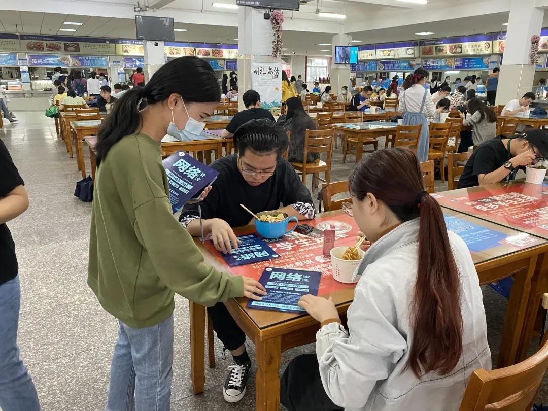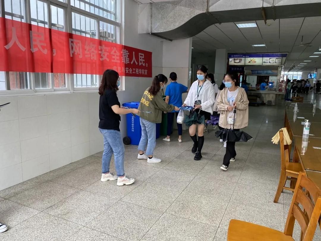 2020年9月19日11时,学院在十食堂发放网络安全知识宣传单,以增大网络安全知识宣传覆盖面,让更多人了解网络安全的重要性,提高网络安全意识,共同构建一个安全、文明、和谐的网络环境。