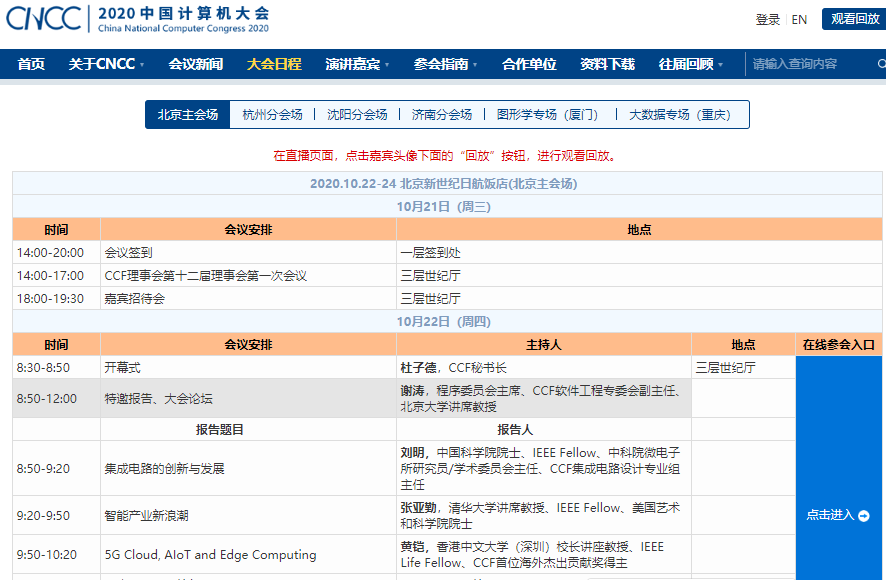 2020中国计算机大会(CNCC2020)于10月22-24日在北京举行,在沈阳、杭州、济南、重庆、厦门等地设置了3个分会场和3个专场,且开通了线上直播。
