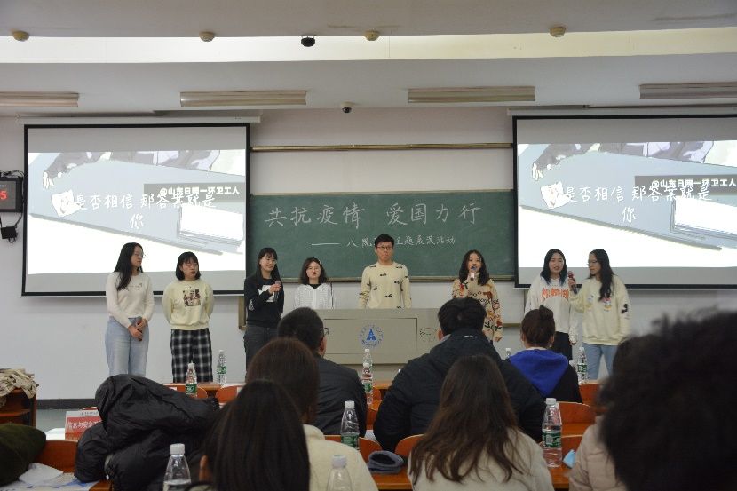(通讯员:李必成 王婷 游茜)在抗击新冠肺炎疫情的伟大实践中,中华民族铸就了生命至上、举国同心、舍生忘死、尊重科学、命运与共的伟大抗疫精神,体现出人民立场、团结力量、革命英雄主义、科技支撑和大国担当。为了加强各学院(中心)研究生会间的沟通交流,共同学习抗疫精神。12月11日下午2点,“共抗疫情、爱国力行”八院联合主题展演活动在文波楼112教室顺利举办。本次活动由信息与安全工程学院研究生会主办,马克思主义学院、哲学院、经济学院、新闻与文化传播学院、工商管理学院、会计学院和法律硕士教育中心研究生会协办。