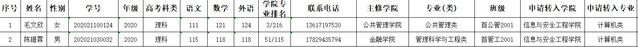 2020级本科学生调整修读专业申请转入我院审核通过名单 如对上述结果有异议者,可于即日起至3月11日上午11:00之前向信息与安全工程学院文永楼206室教学办反映。 公示电话:027-88385112 王老师 信息与安全工程学院教学办 2021年3月9日