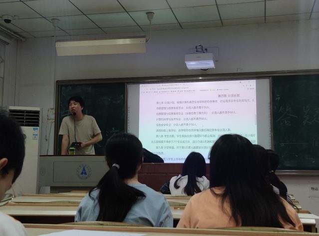 接下来,沈计老师就当前班级面临的最重要的焦点问题——专业分流进行了讲解,详细介绍了四个专业的主要培养方案、特色、课程和未来的就业与发展前景,对各个专业的侧重点及核心专业课程进行了简要说明。最后,沈计老师对班级同学提出的问题和看法进行了答疑解惑。