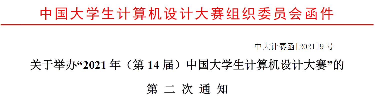 2021年(第14届)中国大学生计算机设计大赛由中国大学生计算机设计大赛组织委员会主办,参数对象为2021年在校的所有本科生(含来华留学生)。第14届大赛分为软件应用于开发、物联网应用、大数据应用、人工智能应用、信息可视化设计、微课与教学辅助、数媒静态设计、输煤动漫与短片、数媒游戏与交互设计、计算机音乐创作等14个类别(详见计算机设计大赛官网)。2021年大赛决赛在上海、阜阳、南京、福州、绍兴等六个赛区举办,时间从2021年7月17日持续到2021年8月31日。受新型冠状病毒肺炎疫情影响,所有赛事均由线下转移到线上举行。