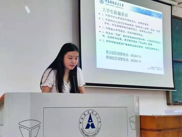 接着,学工21级辅导员焦馨蕙老师就“大学生职业规划之起点”为新生做了详细指导。他以陈曦垚、苑心怡以及刘子安、董翔宇四位优秀学生代表为例,希望新生们能够了解学业上的相关规定、树立合理正确的目标、在做好学业工作的同时,发展爱好、提高各项能力,以度过一个有意义有收获的大学生活。除此之外,焦馨蕙老师也十分注重新生们道德建设方面的问题,他希望新生能够勇担责任,不忘根本,努力创造一个美好的未来。