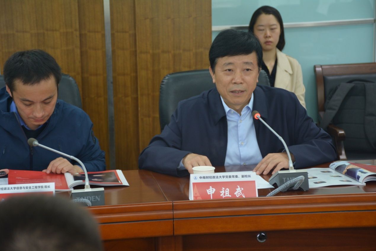 申祖武副校长对北京天融信科技集团高级副总裁晋钢等一行到访学校表示了热烈欢迎,并介绍了学校办学历史和特色,阐述了双方战略合作的重要意义。他指出:学校信息与安全工程学院和天融信科技集团在学科专业、行业领域等方面有很好的契合度,在网络安全、大数据、云服务等方面有很好的合作空间,此次双方签订产教融合协同育人战略合作协议及实习基地合作协议,将能够协同发挥人才优势、科技优势、平台优势,双方在协同育人、网络安全研发、产教融合发展、推进社会进步等方面一定能够取得更大的成就。