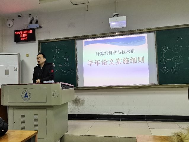 2021年12月16日星期四下午4点在文泰112,计算机科学与技术系成功举办学年论文动员会。参会人员:熊平副院长、张承德副主任、各教研室主任、计科系全体任课教师、计科1901和信安1901全体同学。