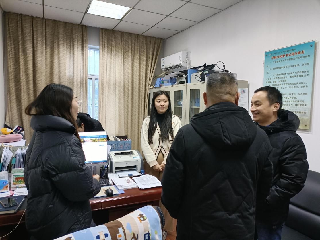 2022年2月19日,是米兰电竞·(中国区)党政教辅人员新年上班的第一天。上午八时三十分,带着新春的美好祝福,院长金大卫、院党委书记张从发、院党委副书记王延、副院长李毅鹏等看望慰问了院办公室、院教学办公室、院图书馆、安环实验室、研究生教学办公室、本科生教学办公室等工作人员,勉励大家在新的一年里鼓足干劲、努力工作,再创新业绩。(院领导走访安环实验室)(院领导走访本科生教学办公室)(院领导走访本科生教学办公室)