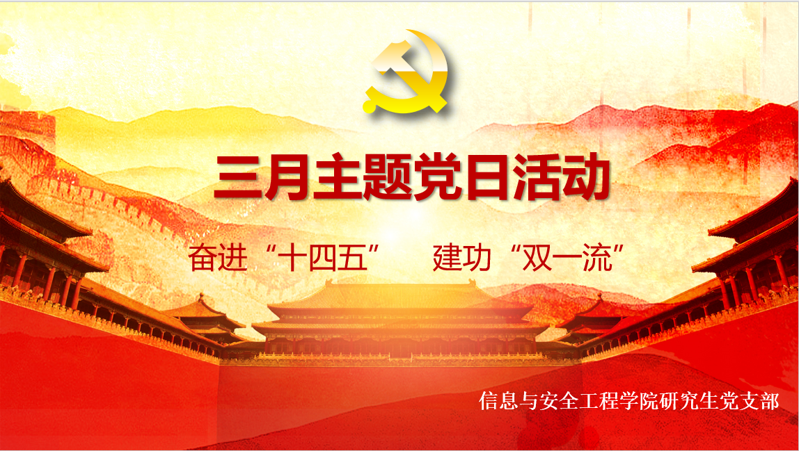 (通讯员:李必成 张梦月)2022年3月25日晚七点,信息与安全工程学院研究生第二党支部开展了“奋进十四五 建功双一流”支部主题党日活动。本次主题党日活动在腾讯会议上开展,会议由研究生第二党支部纪检委员李春晖同志主持,第二党支部全体党员同志参加了本次会议。