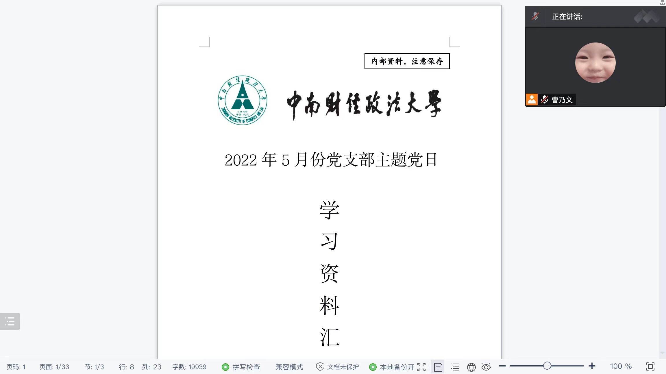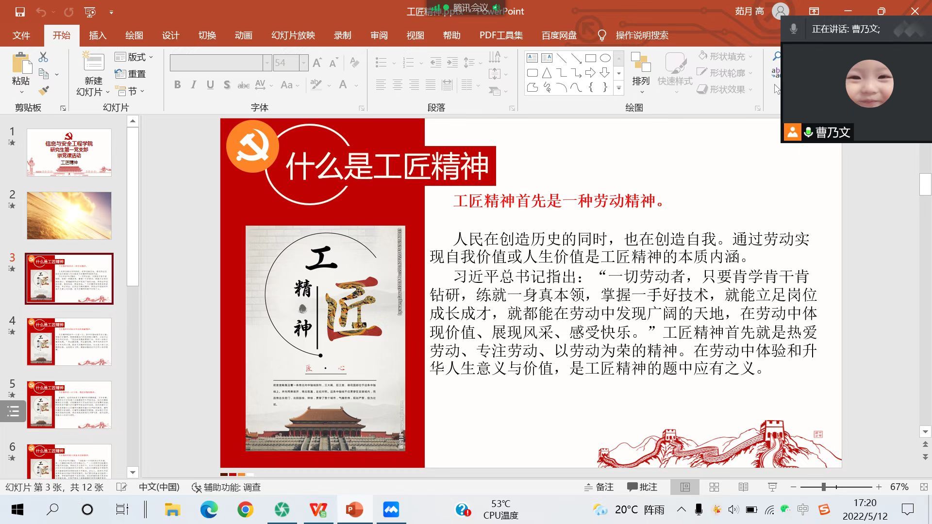 (通讯员:李必成 曹乃文)2022年5月12日17:00,信息与安全工程学院研究生第一党支部召开了“奋进‘十四五’ 建功‘双一流’”支部5月主题党日活动。本次主题党日活动在腾讯会议线上开展,会议由支部组织委员高茹月同志主持,研究生第一党支部全体党员同志参加了本次会议。