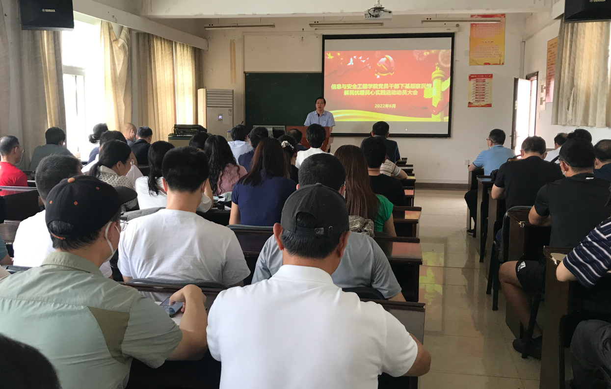 (通讯员:杨晨)6月9日下午,信息与安全工程学院召开党员干部下基层察民情解民忧暖民心实践活动动员大会。学院领导班子成员及全体教职工参会,会议由学院院长金大卫主持,学院党委书记林际福作动员讲话。