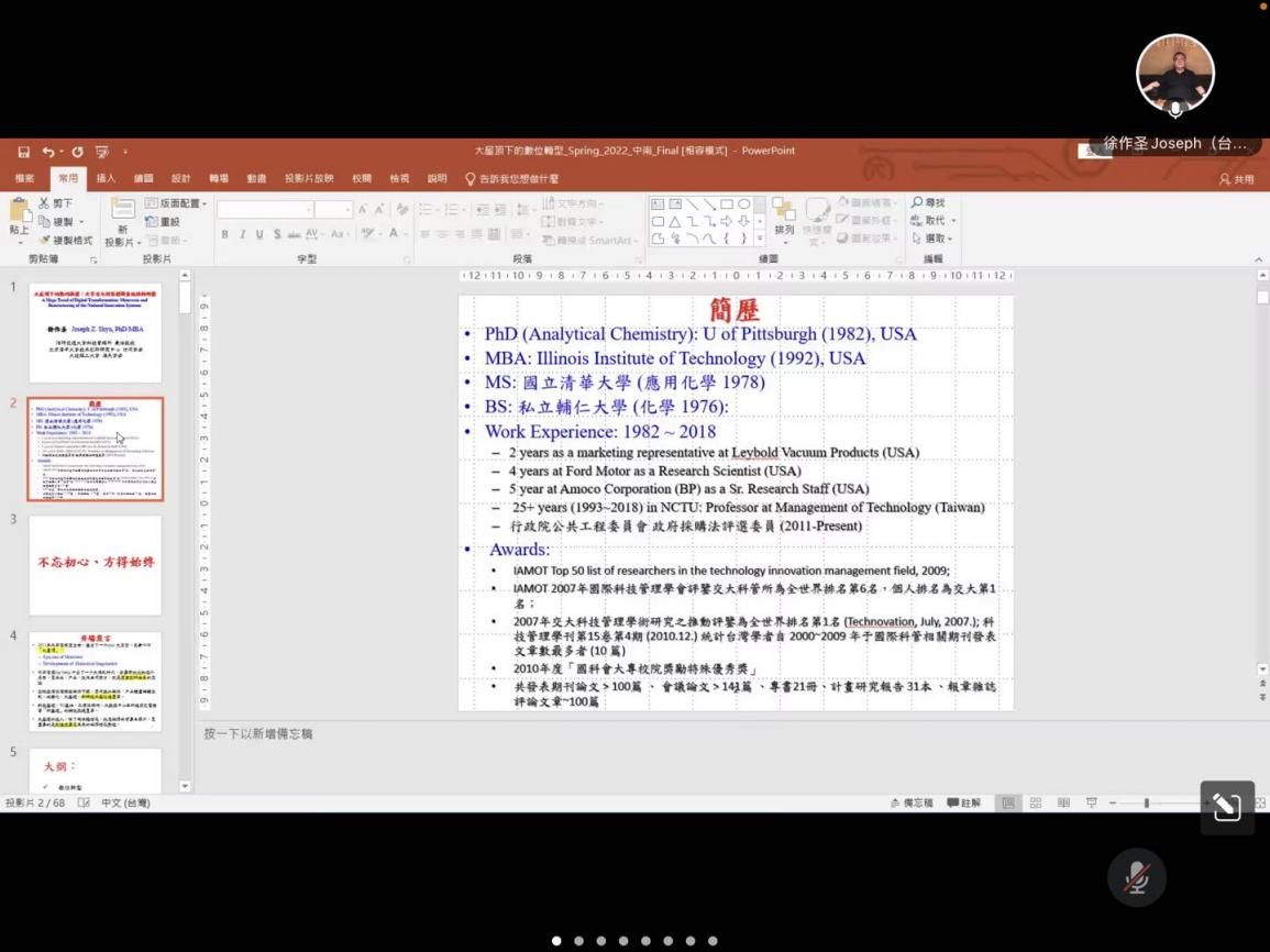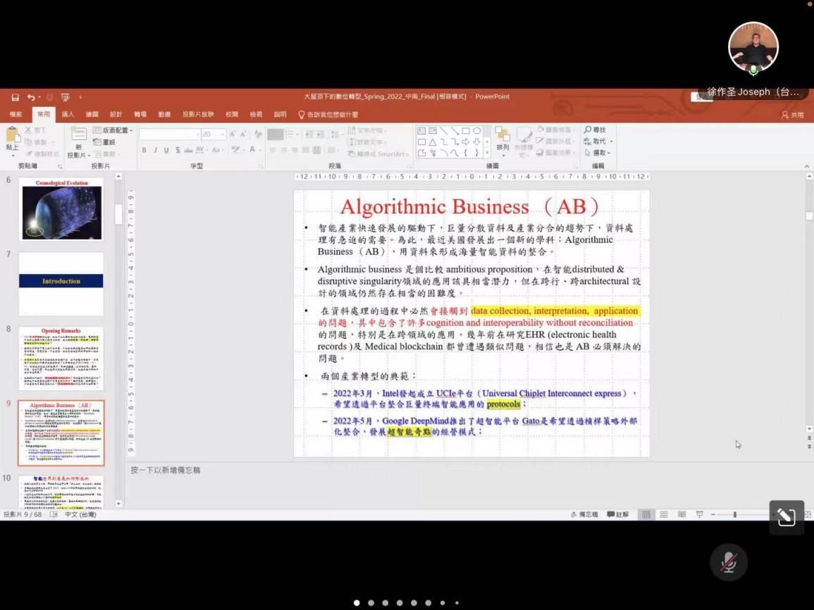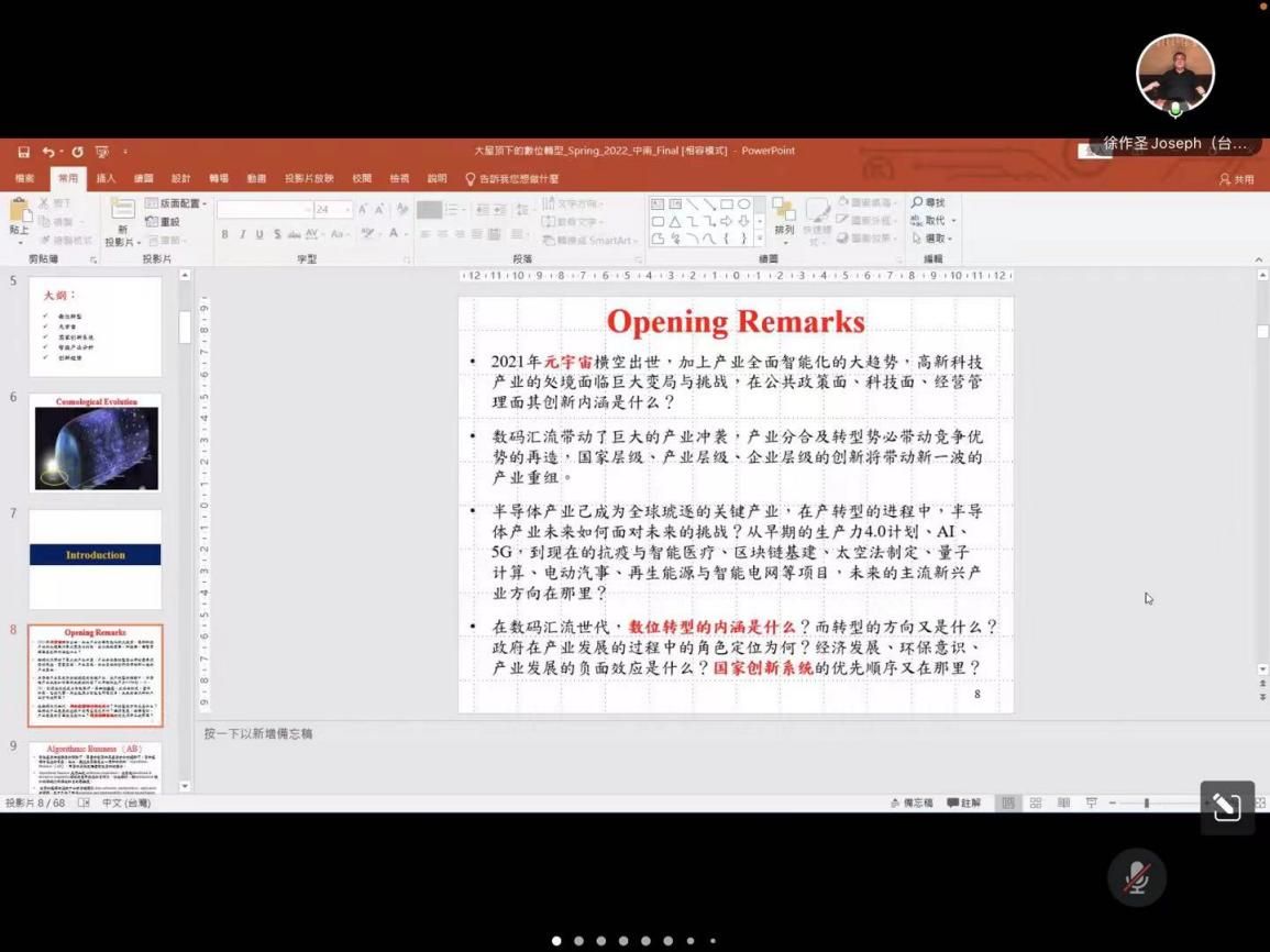 首先,徐教授通过提出一系列问题引入今天的讲座内容:2021年元宇宙横空出世,加上产业全面智能化的大趋势,高新科技产业的处境面临巨大变局与挑战,在公共政策面、科技面、经营管理面其创新内涵是什么?在数码汇流时代,数位转型的内涵是什么?转型的方向又是什么?