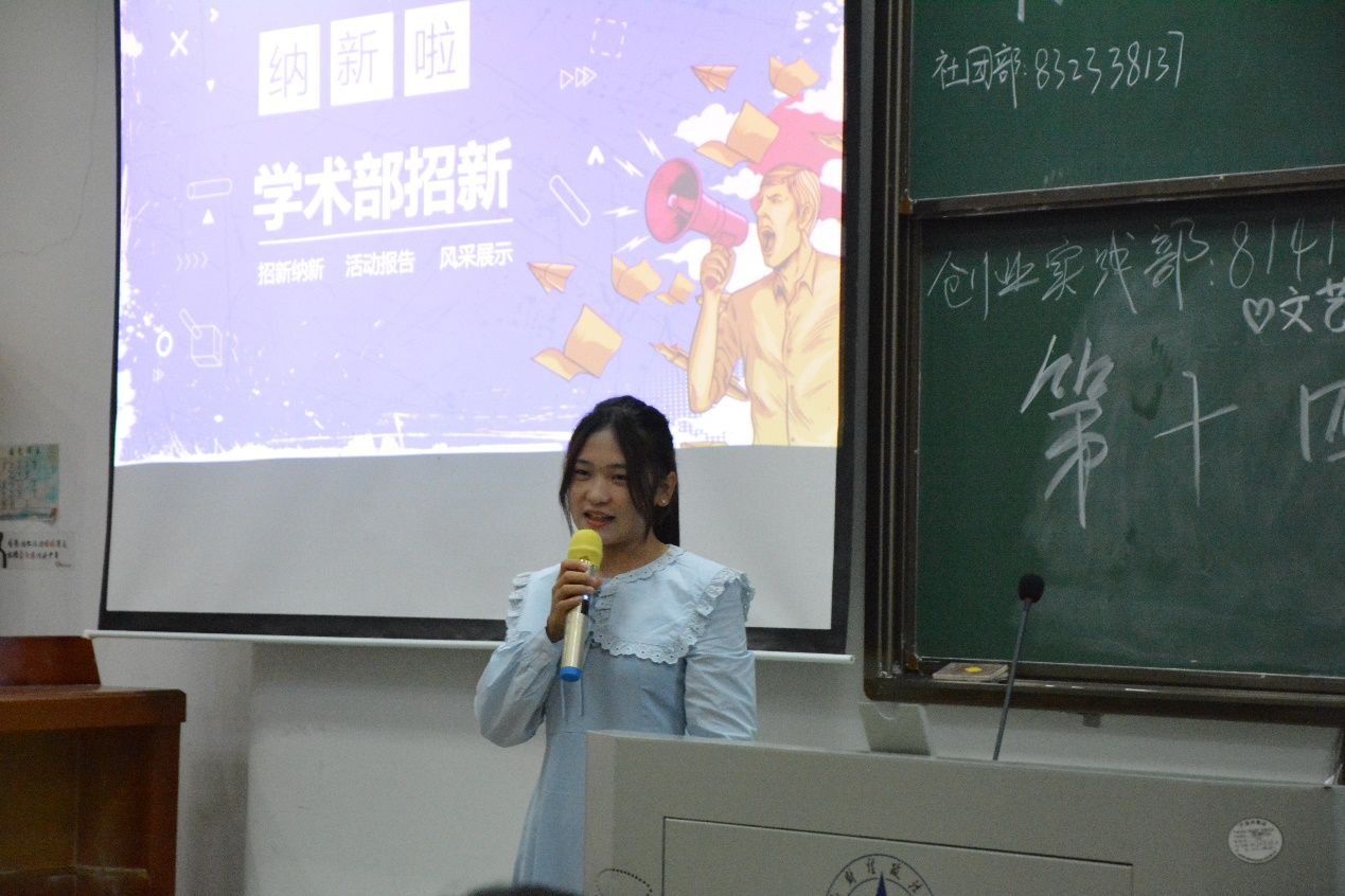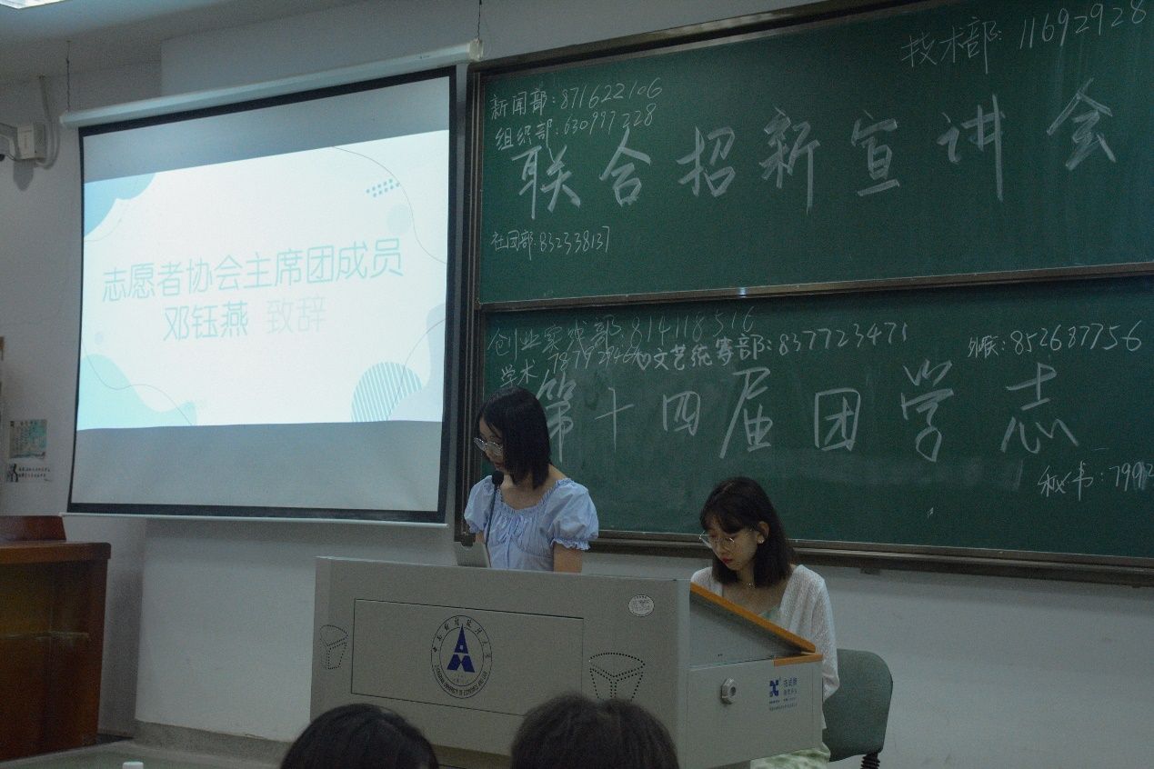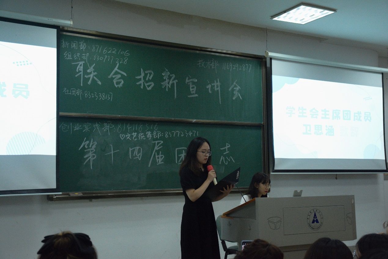在各部门宣讲之前,团委、学生会、志协的主席团成员杨硕、卫思涵、邓钰燕依次上台发言。他们对新生通过高考独木桥来到工程院表示祝贺,并介绍团学志的职责和定位,欢迎新生加入团学志共同为学院发展贡献一份力量,期待团学志能够在新生的加入后发展得更好,也期望新生能够服务与工作过程中得到锻炼和成长。