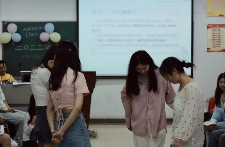 第二轮表演开始,蒋展同学带来吉他弹唱《南方姑娘》,随后由徐浩和周子昱同学带来歌曲《我的歌声里》,在他们温柔的歌声里,现场逐渐安静下来,同学们不知不觉沉浸在了优美的音乐中。但很快,现场的气氛又由《报纸叠叠乐》游戏重新调动了起来。