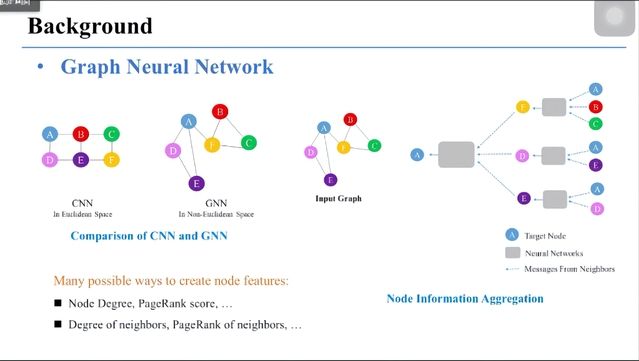 首先,胡教授就所作研究的背景进行了介绍,包括研究中所使用的图和图神经网络、节点的度、节点的信息聚合等基础知识。