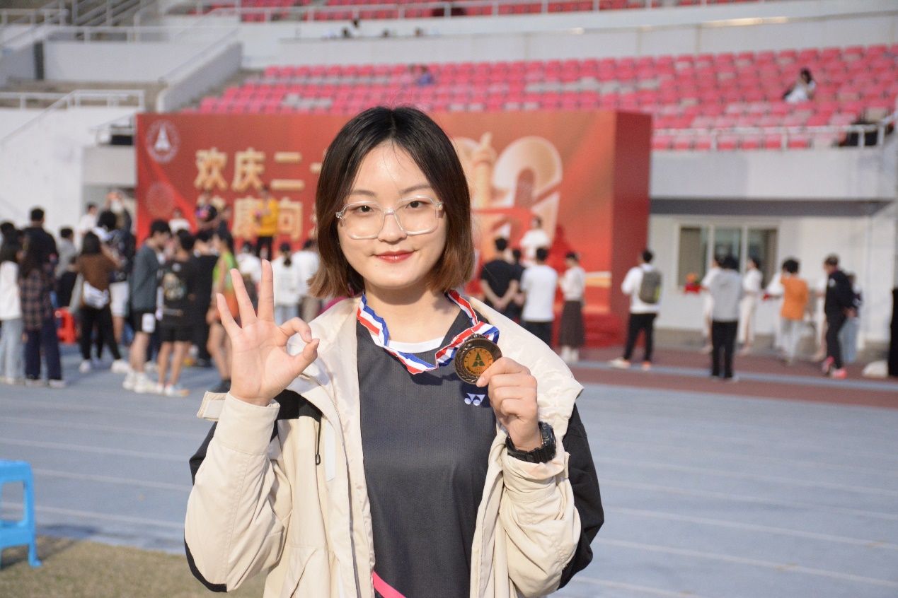 同时,曹俣妍同学谈及了赛前的心态调整:“我赛前特别紧张,因为去年拿了银牌,今年是奔着冲刺金牌的目标去的,所以我比赛前有很大的压力。但是我会给自己做心理调适,不停地暗示自己,也不一定要金牌,只要为我们院争光就行。”