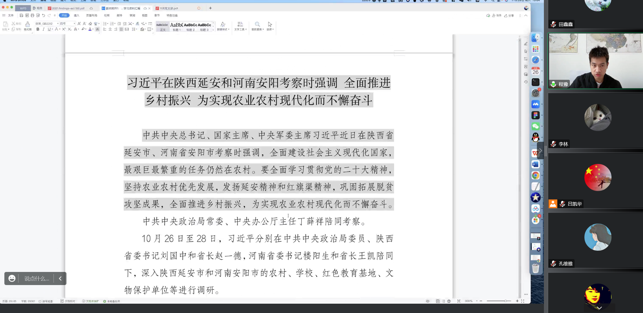 第三部分,“为全面推进乡村振兴贡献力量”主题学习,重点学习了《习近平在陕西延安和河南安阳考察时强调全面推进乡村振兴为实现农业农村现代化而不懈奋斗》《习近平:坚持把解决好“三农”问题作为全党工作重中之重,举全党全社会之力推动乡村振兴》文件。支部党员通过专题学习,进一步提高认识、勇担使命、各显其能,为全面推进乡村振兴积极贡献智慧和力量。