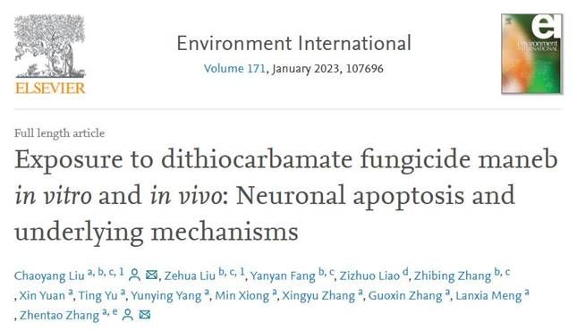 题目:体内和体外暴露于二硫代氨基甲酸酯类杀菌剂代森锰的神经元凋亡及机制