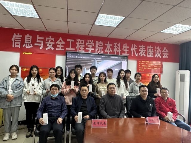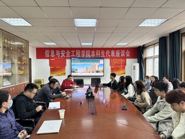 (通讯员:王诗苇)2023年4月4日中午12:00--13:30,信息与安全工程学院召开本科生代表座谈会。参会人员有各年级本科生代表、各系教学主任、本科教学秘书。会议由分管本科教学的副院长李毅鹏主持。