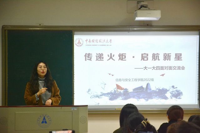 (通讯员 蒋立博 陈孝丁敬 摄影 蒋立博 郭健伟)2023年4月23日,“传递火炬,启航新星”---大一大四面对面交流会在首义校区文润楼112教室顺利举行。此次交流会由信息与安全工程学院2022级辅导员陈孝丁敬老师组织和主持,2019级本科生黄楚嘉、李佳龙、吴雨凡、杨娇羽、张越、张书豪同学从就业、保研、考研、留学、实习、大学规划、学业、学生工作等多方面与2022级同学进行交流。