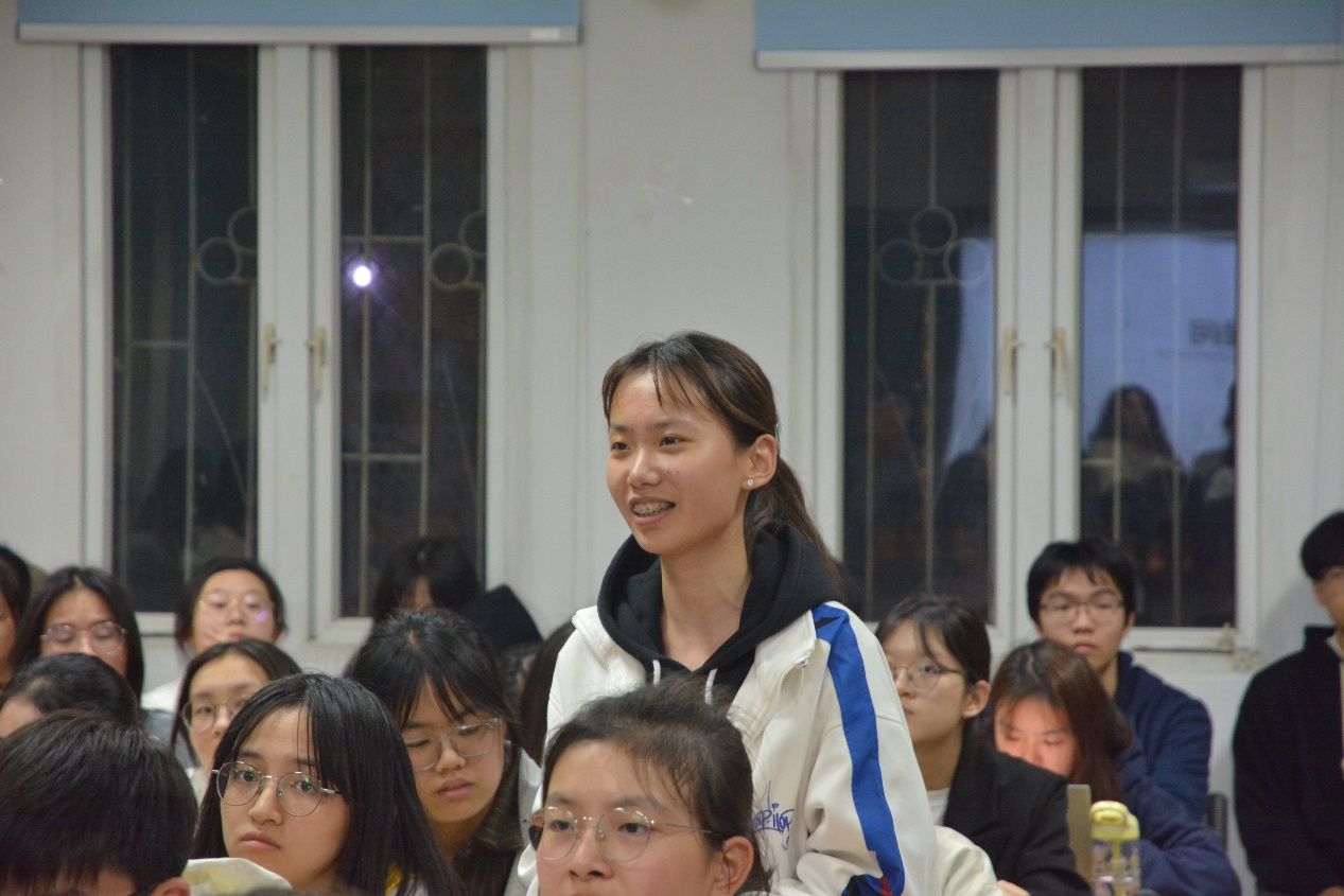交流会采用线下+线上多模式提问的方式,2022级同学们既可直接举手向毕业生提问,也可通过扫码线上提出自己的问题。在会上,2022级同学们积极踊跃提问,师兄师姐们针对专业学习、备战竞赛、出国准备、考研规划等方面问题进行了细致解答和分享,交流会延长到两个多小时,原定120人的活动场地座无虚席甚至还加了额外的座位。2022级同学们认真倾听、专心致志的状态也受到师兄师姐的的夸赞。