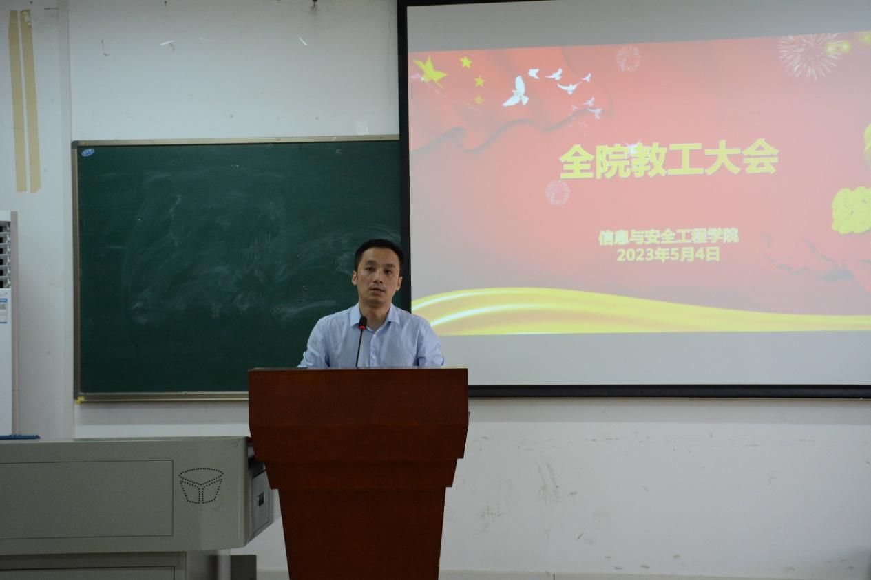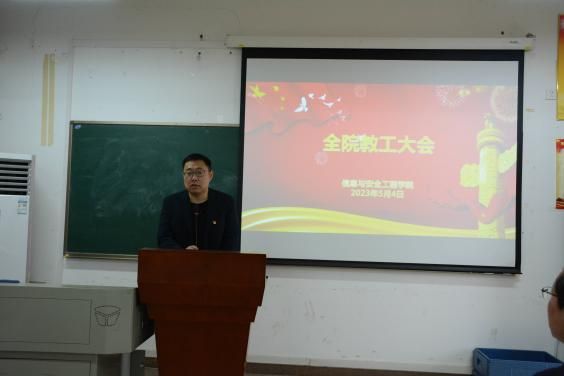 学院院长金大卫根据巡察整改工作要求,结合学院核岗定编、人才引进、新办公楼搬迁等具体工作,对学院今后的发展规划和学科布局进行了阐述,并号召全院教工同心协力,踔厉奋发、勇毅前行,推动学院内涵式高质量发展。