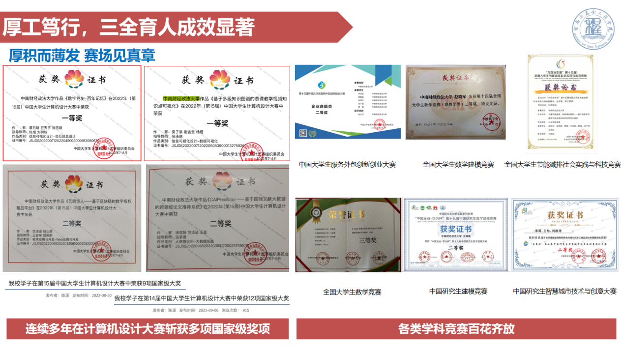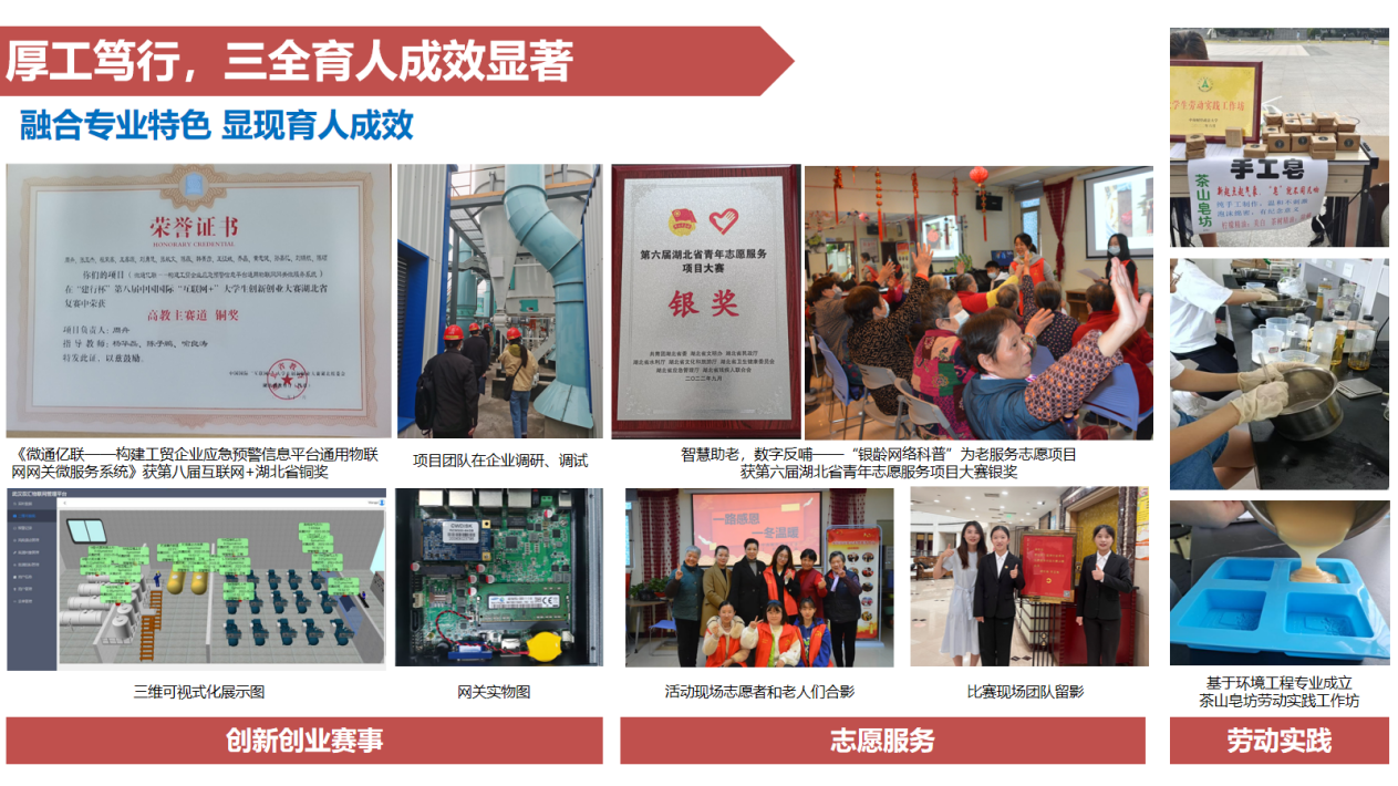 图16、17 学术竞赛、创新创业、志愿服务、劳动实践等多方面取得优异成绩