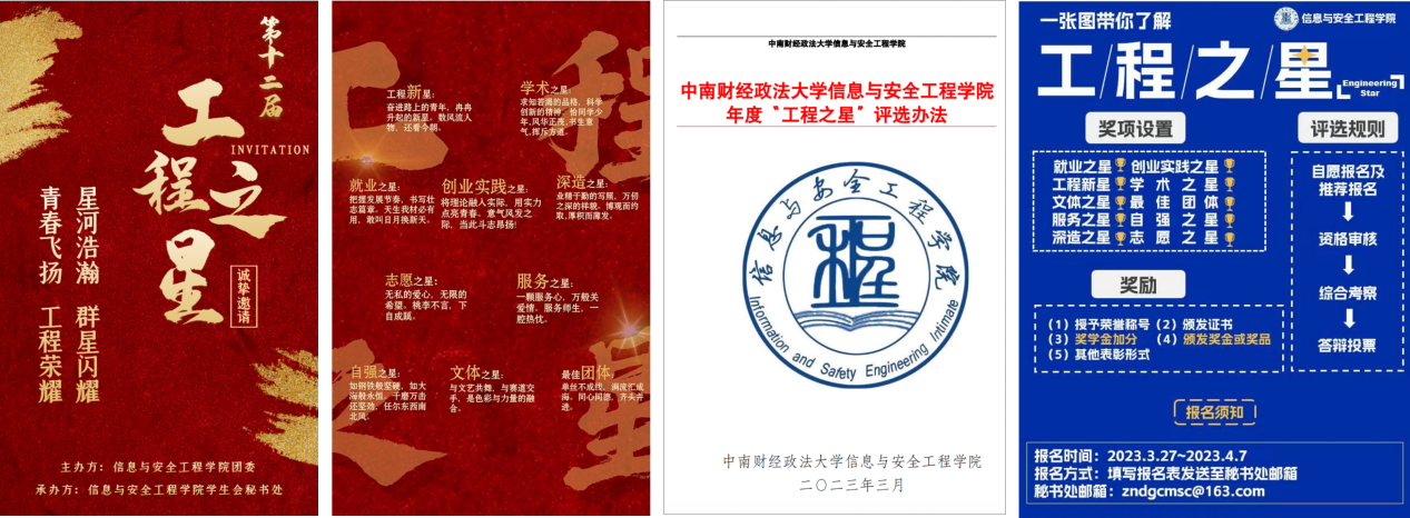 图6 信息与安全工程学院年度表彰典礼“工程之星”宣传海报及评选办法