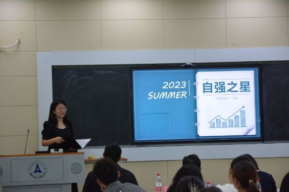 “文体之星”候选人刘京乐、曹俣妍,他们在学海书山中踏出了别致的风采,能文能武,是阳光向上的好榜样。会上,他们分享了所取得的优秀体育成绩及心得体会。