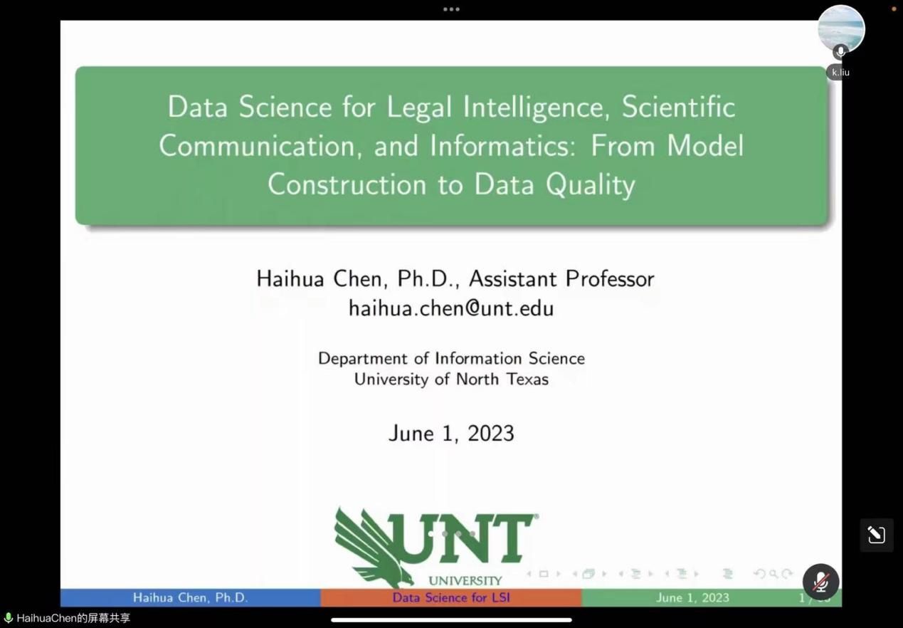 (通讯员:刘心宇 汤小林)2023年6月2日上午10:00, 北德克萨斯大学陈海华助理教授应邀为我院研究生学子开展题为“数据科学在智能司法、科学交流和信息计量中的应用:从模型构建到数据质量”的线上讲座,米兰电竞·(中国区)信息安全与工程学院刘堪教授主持讲座,信息安全与工程学院全体研究生参加讲座。