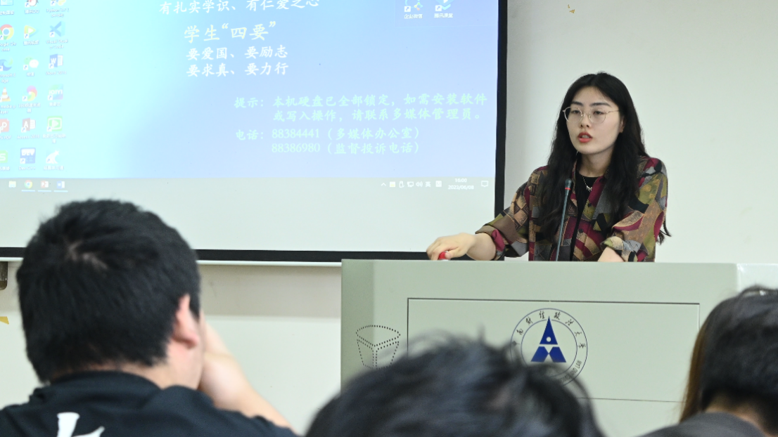 首先,陈老师提醒同学们期末季到来,嘱咐同学们按时复习、积极备考,在考试中严格按照考场规定,提出了“不作弊、不挂科”的基本要求,同时也祝福大家在考试中取得满意的成绩。