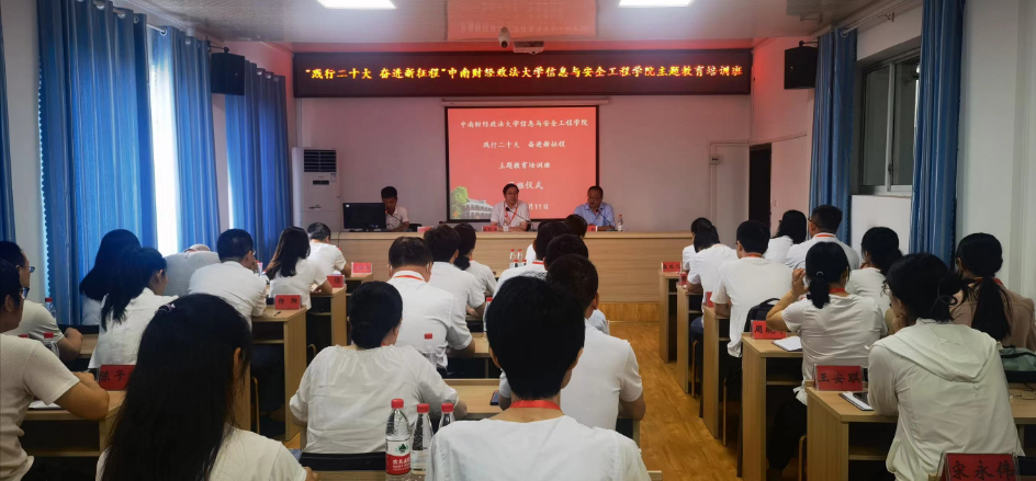 7月11日上午,“践行二十大 奋进新征程”主题教育专题培训班开班仪式顺利举行,遵义市红花岗区委党校常务副校长何钧致欢迎辞并授班旗,信息与安全工程学院党委书记林际福作开班动员讲话。