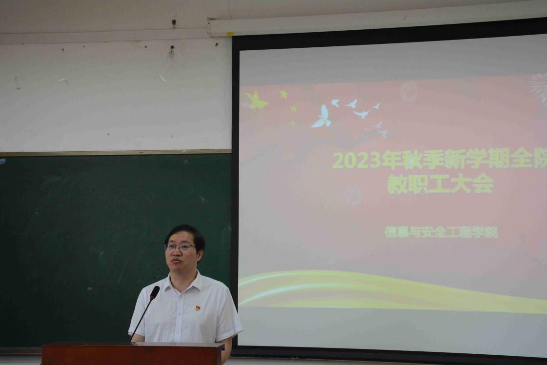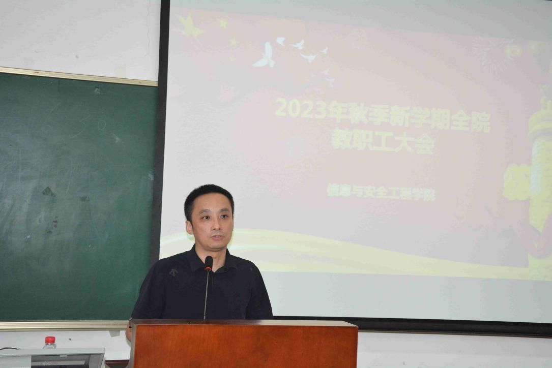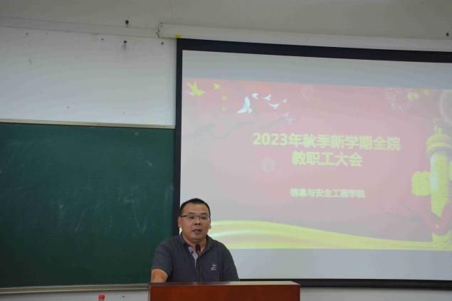 金大卫院长对学院2023年秋季新学期的各项重点工作做出了规划和要求。强调学院要立足学科发展特色,围绕学校“双一流”建设大局,建设与财经政法学科深度融通的工程学院。