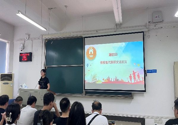 学生代表方面,老生代表郑文洁同学、新生代表冯波同学分别上台发言。郑文洁同学表达出对新生的祝愿,同时希望新生可以对知识有更深刻的探索,收获更多机遇。冯波同学作为新生代表则表达出对未来生活的憧憬,表明作为中南大学子将努力学习、认真钻研。