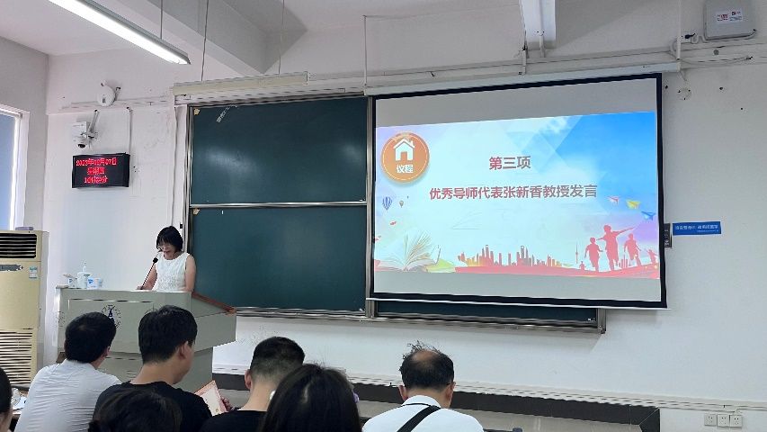 随后,优秀导师代表张新香老师致辞,张老师要求同学们能够在新的起点,不忘初心,脚踏实地。同时,张老师以自己的教学经历为例,举例学生在科研上的故事,表达自己对研究生的理解,希望同学们不要急于求成,要做好自己。
